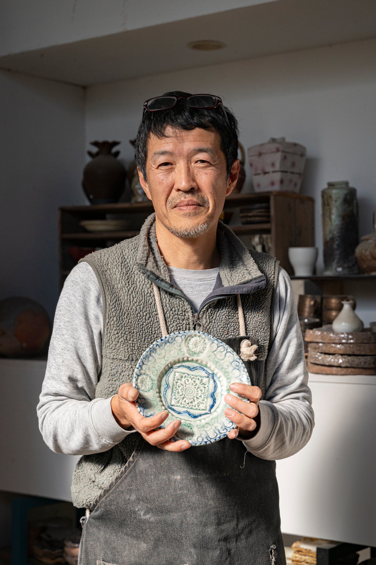 Tomohiro Matsumoto is a Japanese potter working with Shigaraki clay, continuing a family tradition that spans over 150 years. As a fifth-generation potter, he is known for his bold approach to glaze and color. He introduces vivid red tones that contrast with Shigaraki’s traditional hi-iro (緋色) glaze. Today, his work explores a wider range of glazes and firing methods, using materials such as wood ash to create durable, expressive surfaces shaped by fire.