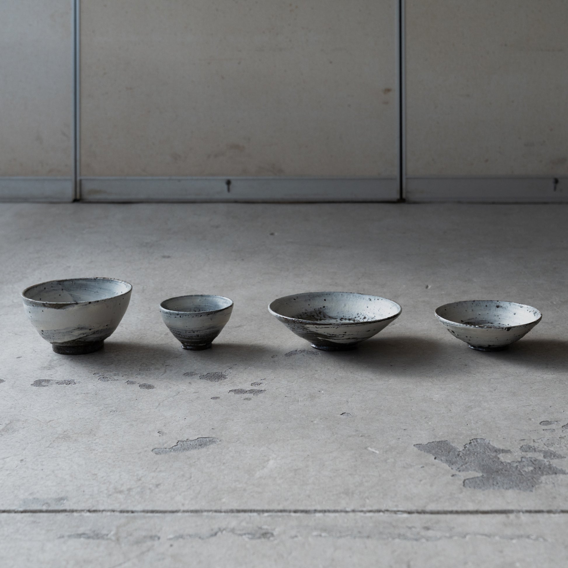Brush, a collection features bowls painted with layered engobe applied by brush, evoking the fluidity of Japanese calligraphy. Although without the hint of its original color from the top, small sections of clay at the bottom and the dents on the surface remind you the pieces are made with Shigaraki’s iconic earth.