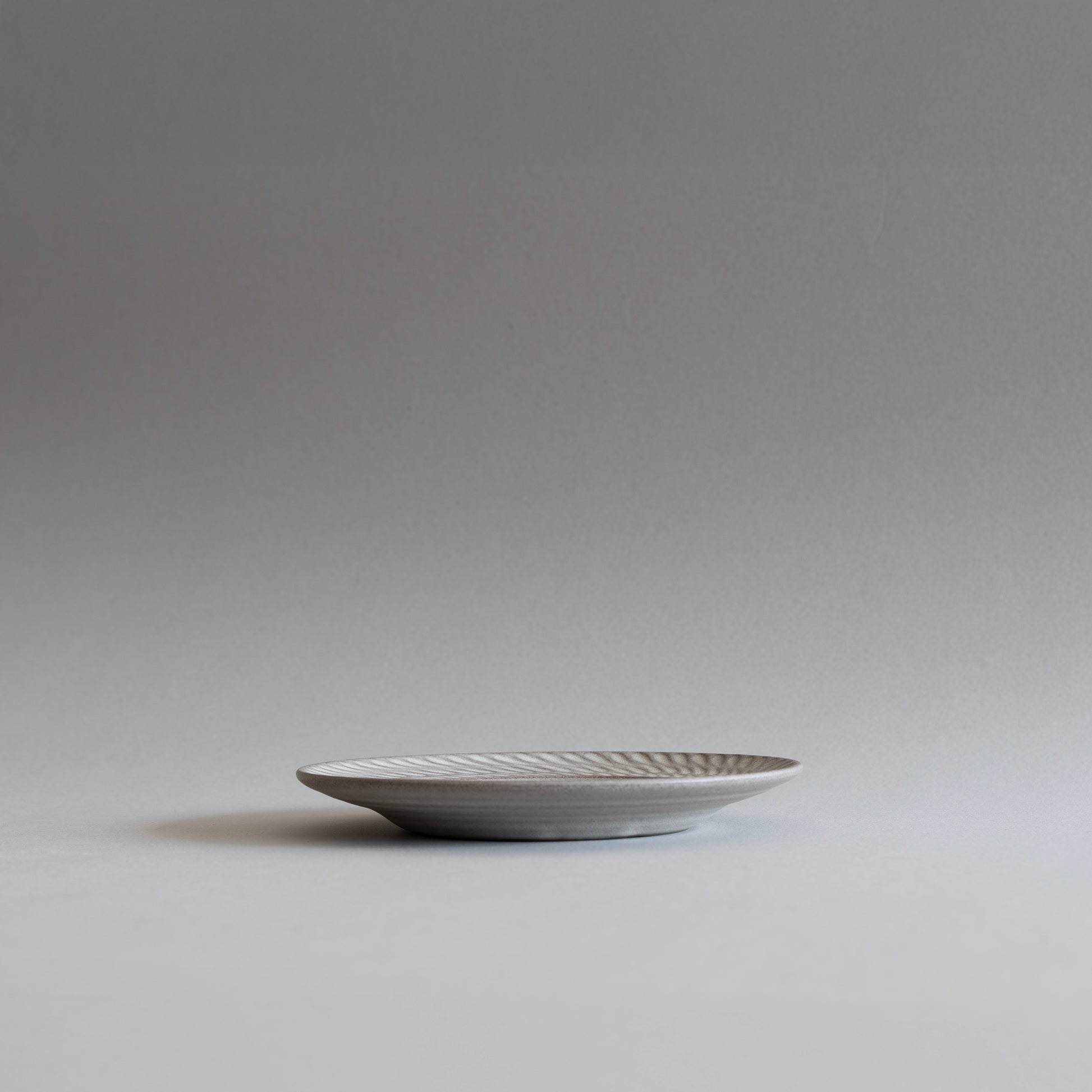 Engrave, a collection consists of plates made with Shigaraki clay and engraved with continuous patterns inspired by nature. The monotone shades of grey create a calm backdrop that enhances the presentation of your dishes.