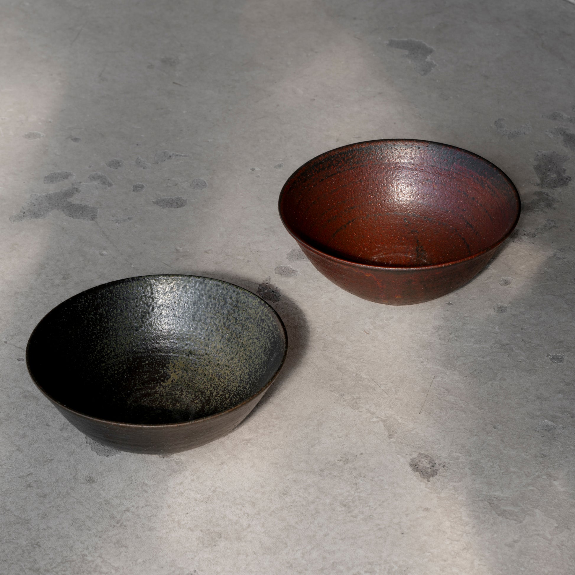 The textured surface highlights the strength and character of Shigaraki clay, while brush-applied glaze adds organic variation. Together with the subdued color tones, the bowl creates a calm yet iconic presence, turning everyday meals into a considered table setting.