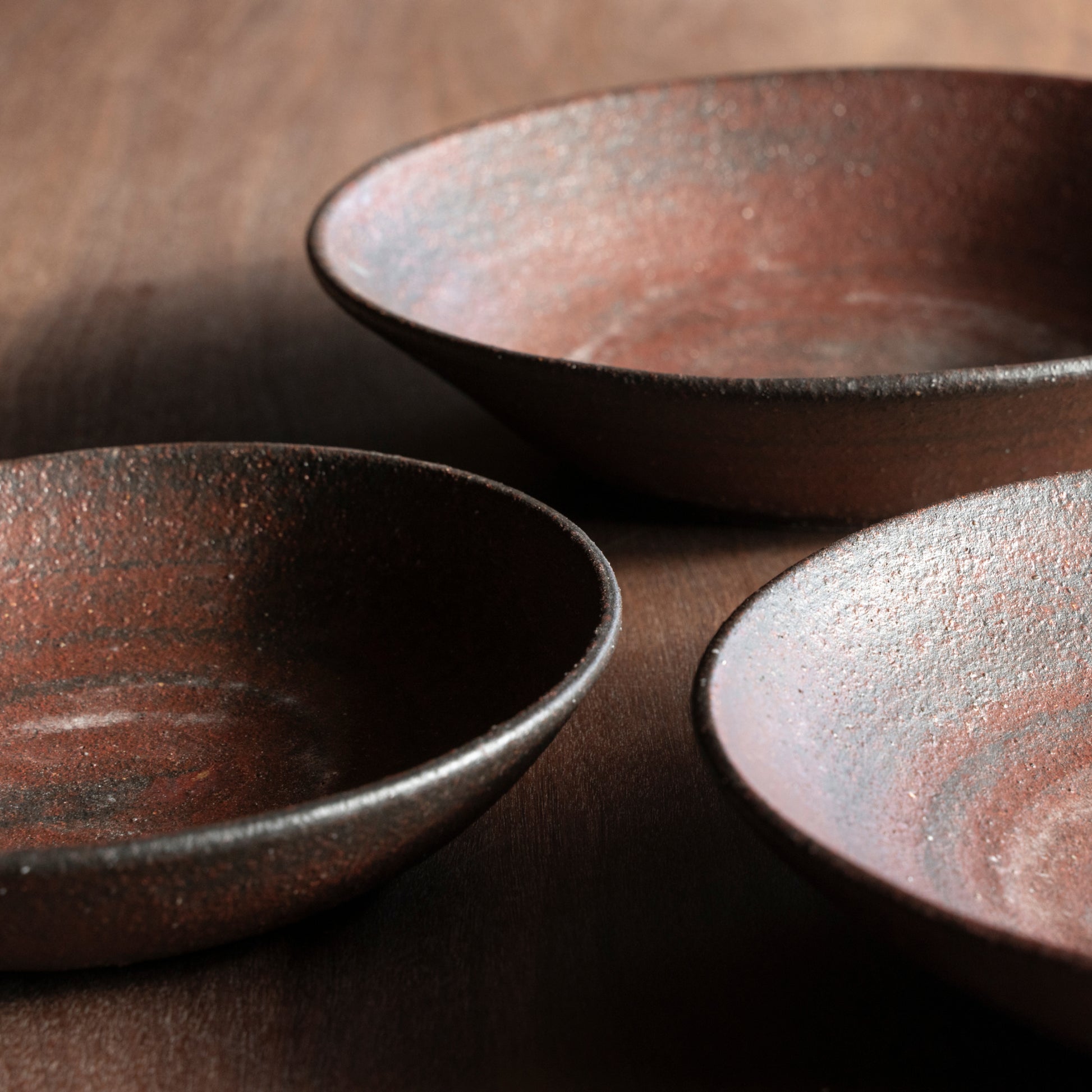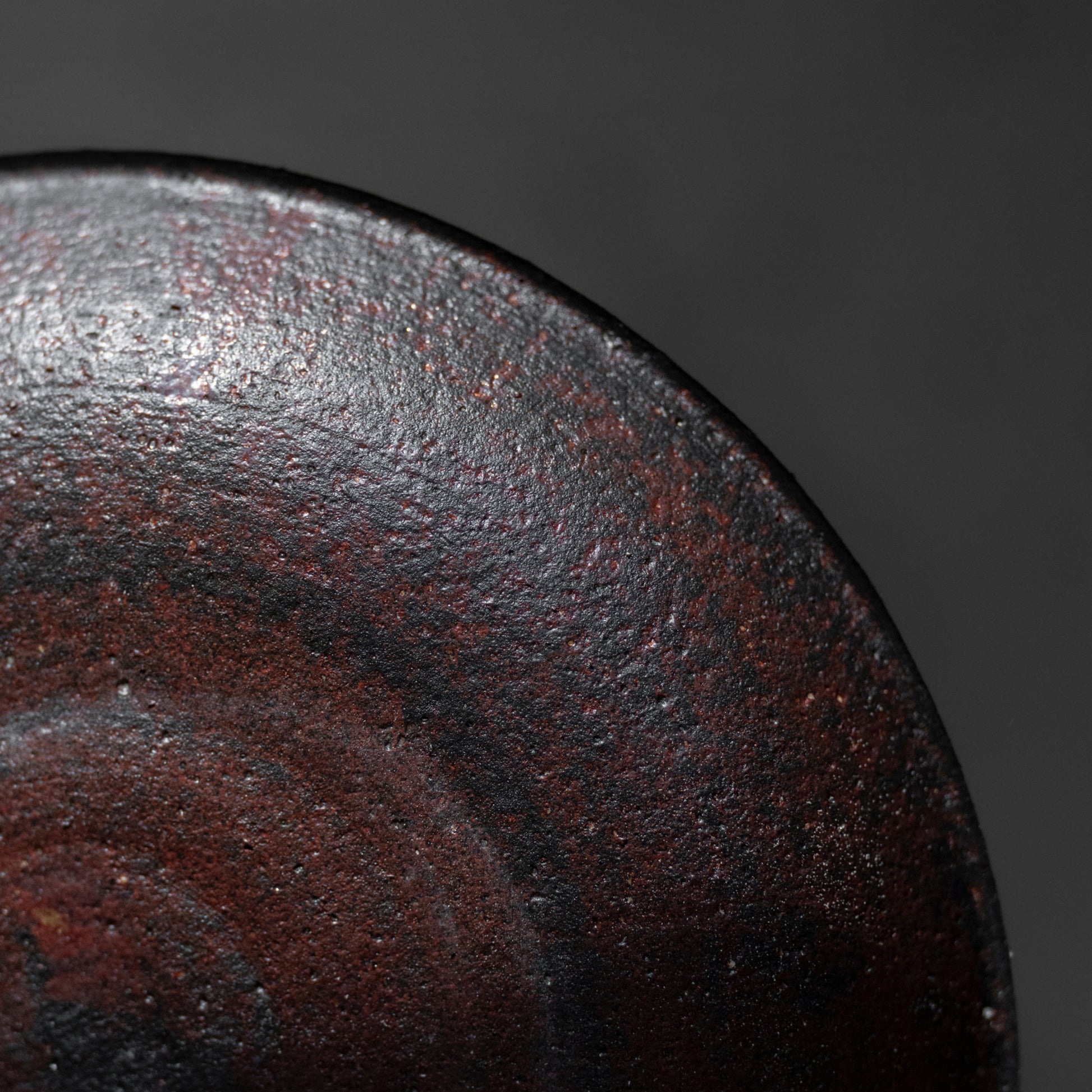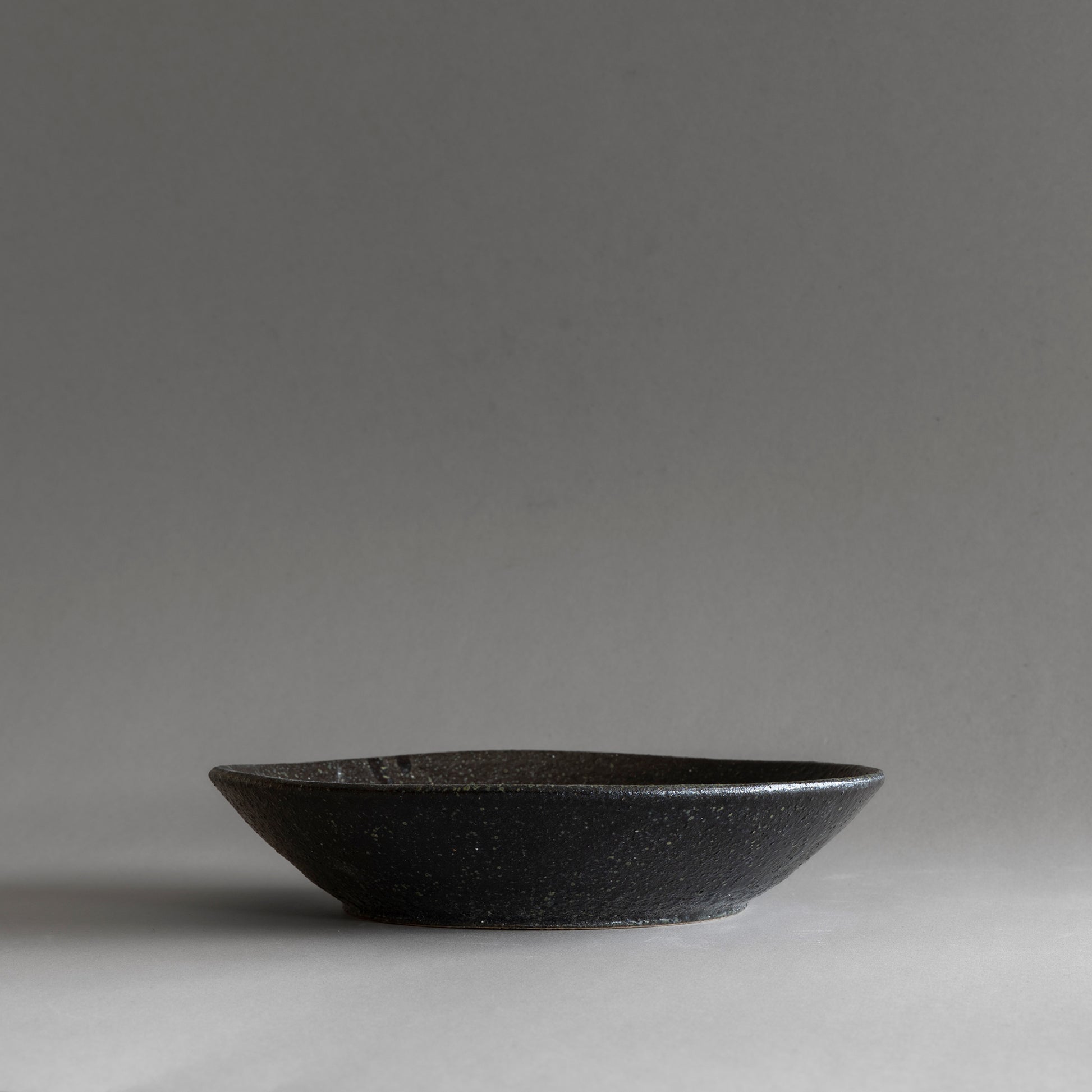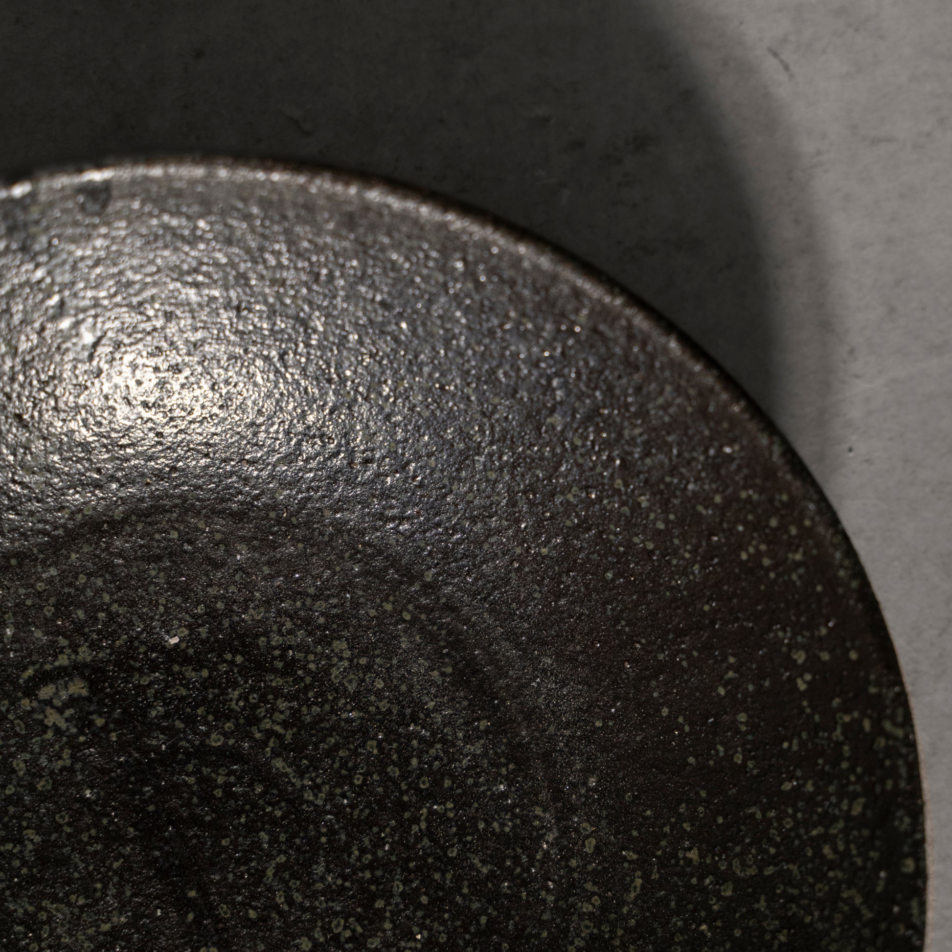 Granule is a collection of bowls and plates defined by surface and touch. Each piece features a coarse, granular texture that emphasizes the raw character of Shigaraki clay, while visible strokes in the glaze reveal its handmade process. Paired with the colour, the grainy texture and the circular shape create an illusion of a galaxy.