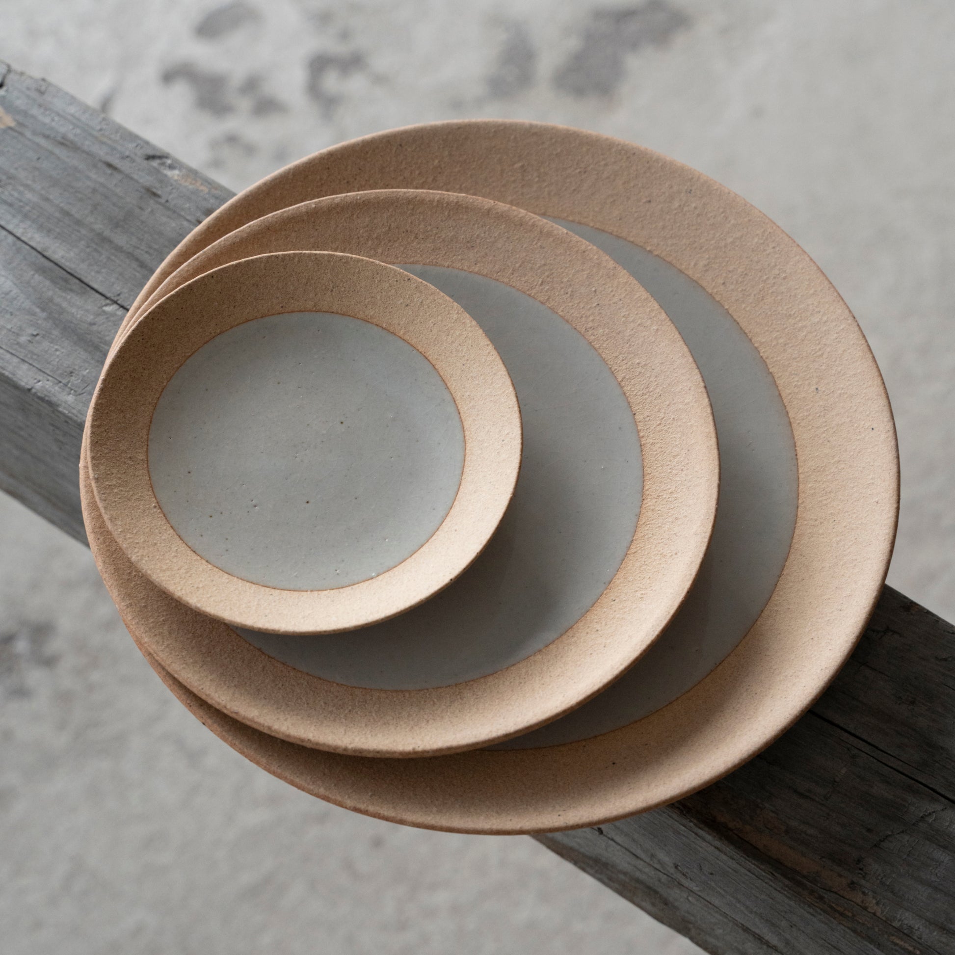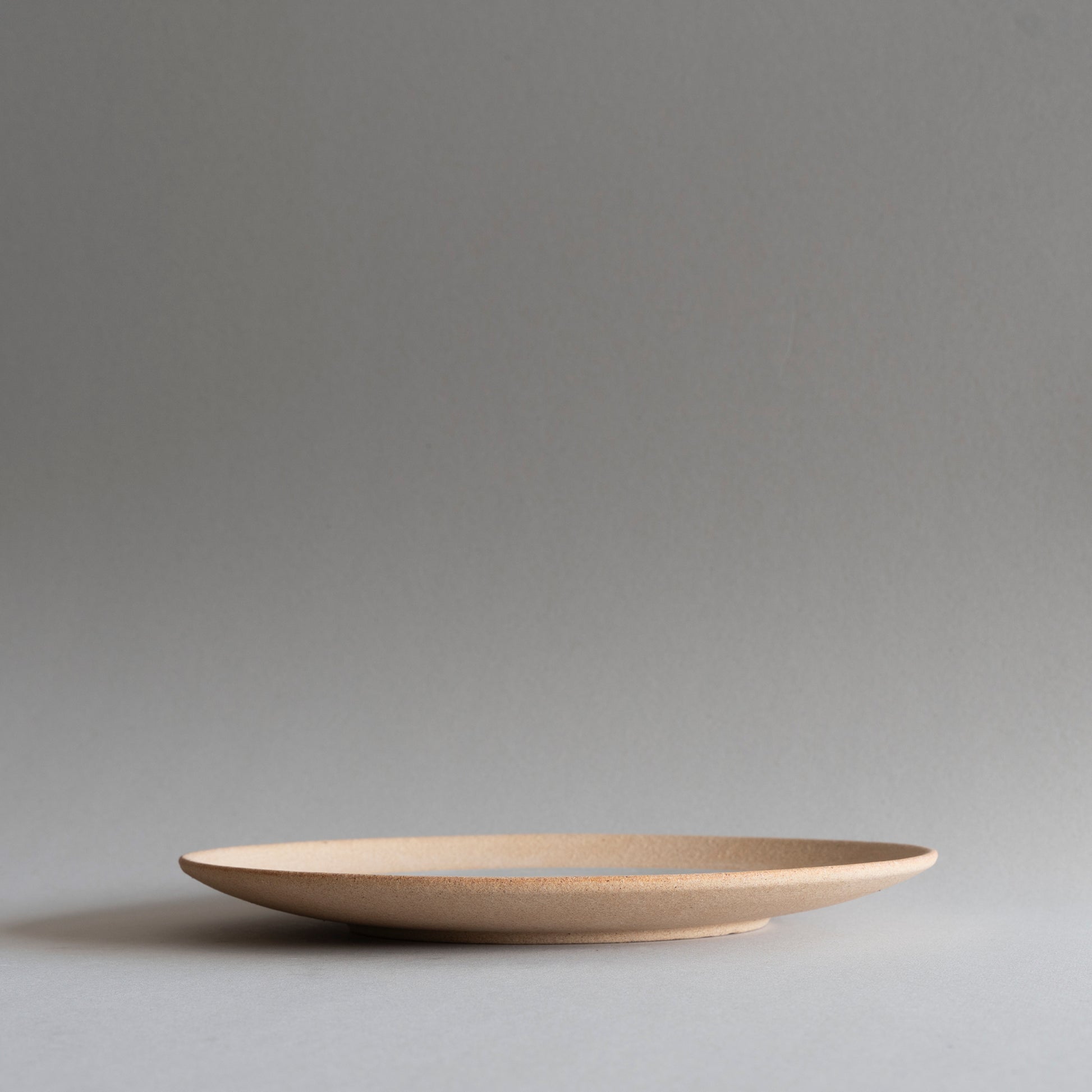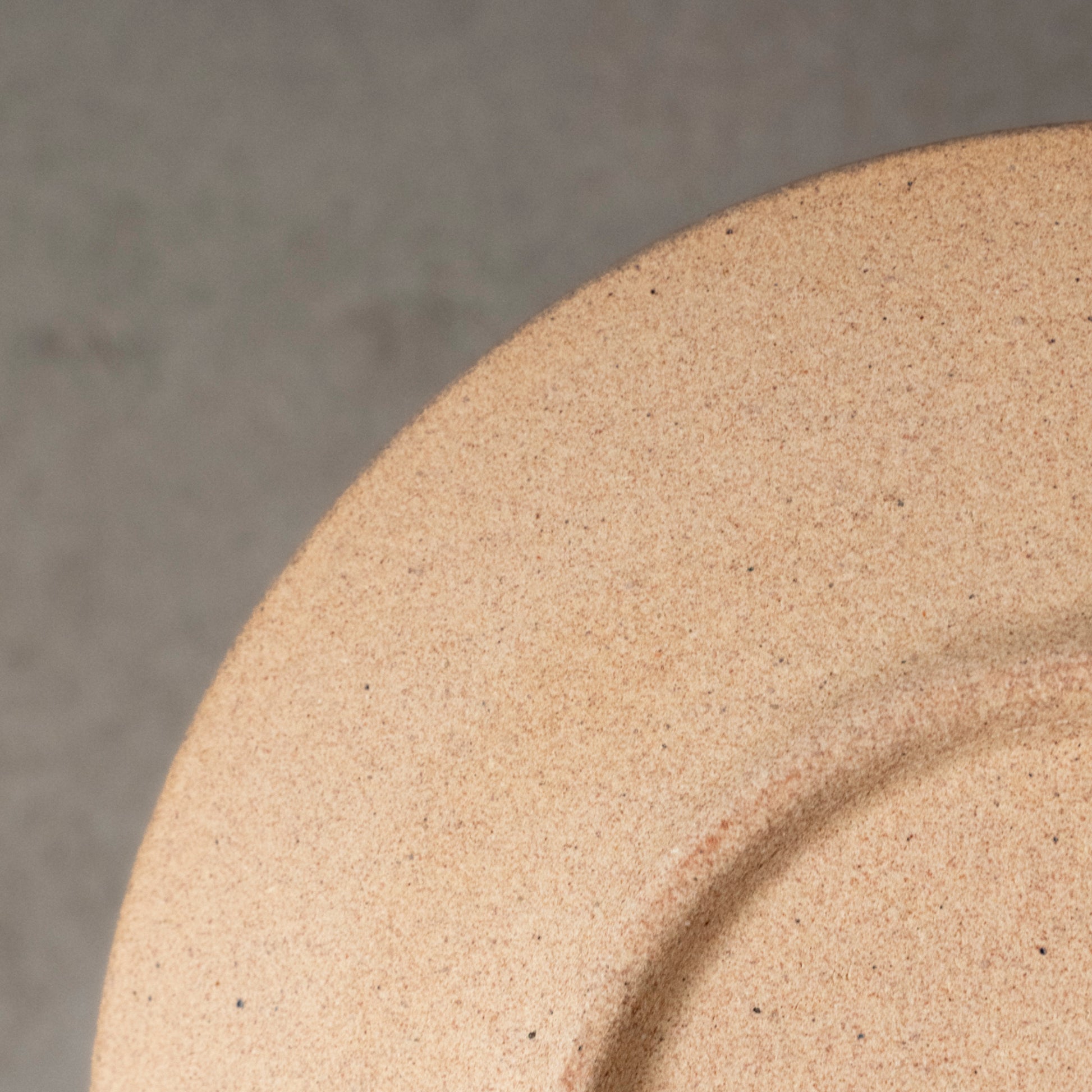 The design pairs natural coarseness of sanded Shigaraki clay with a smooth glazed center, creating a clear contrast between raw texture and refined surface. This balance enhances both the tactile experience and the presentation of whatever you serve, bringing warmth, clarity, and quiet elegance to everyday use.