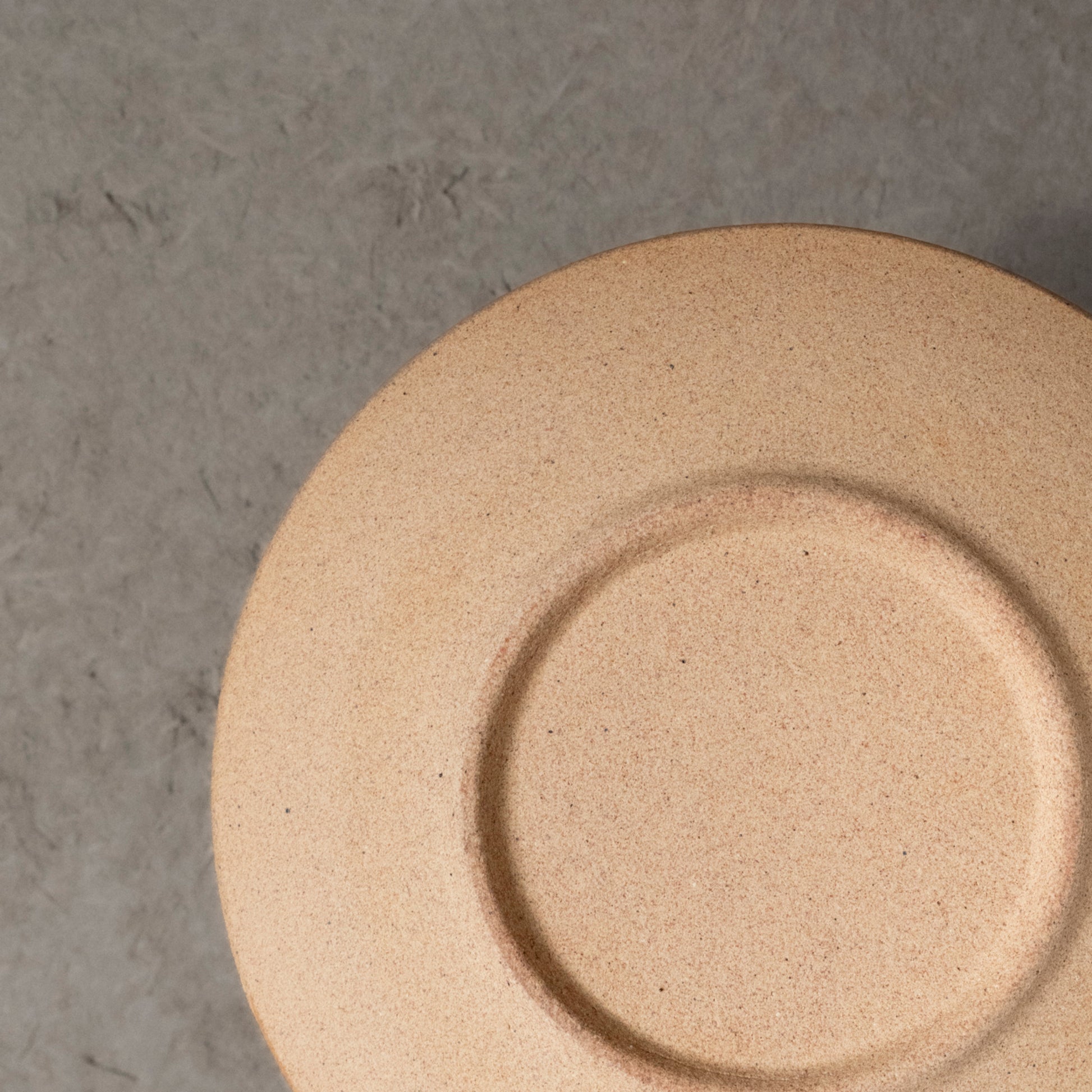 The design pairs natural coarseness of sanded Shigaraki clay with a smooth glazed center, creating a clear contrast between raw texture and refined surface. This balance enhances both the tactile experience and the presentation of whatever you serve, bringing warmth, clarity, and quiet elegance to everyday use.