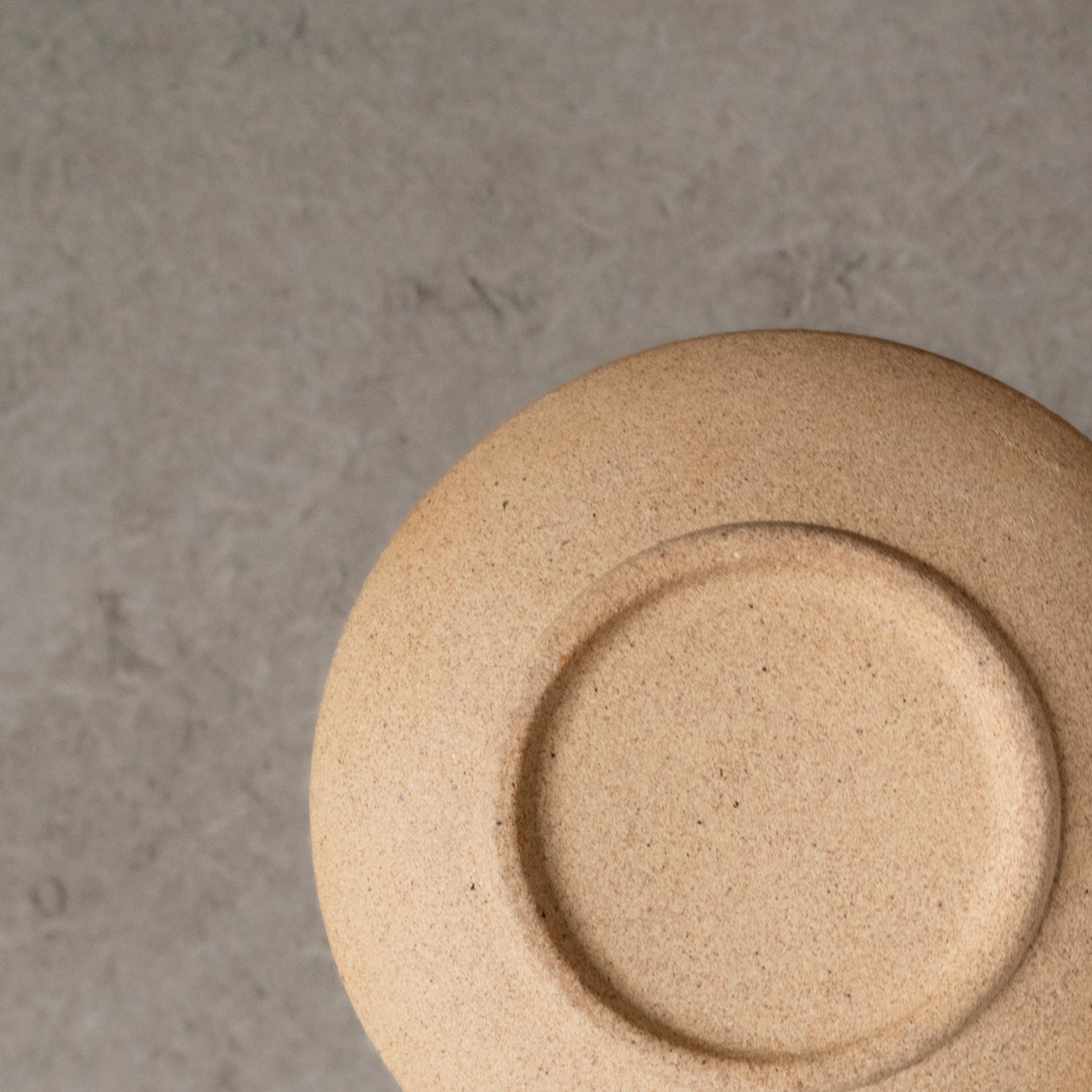 The design pairs natural coarseness of sanded Shigaraki clay with a smooth glazed center, creating a clear contrast between raw texture and refined surface. This balance enhances both the tactile experience and the presentation of whatever you serve, bringing warmth, clarity, and quiet elegance to everyday use.