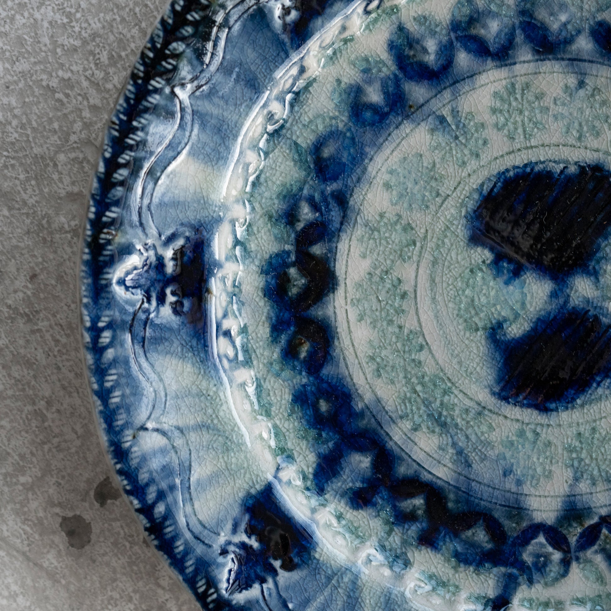 Ash Glaze & Zaffer Imprint Plate (16cm)