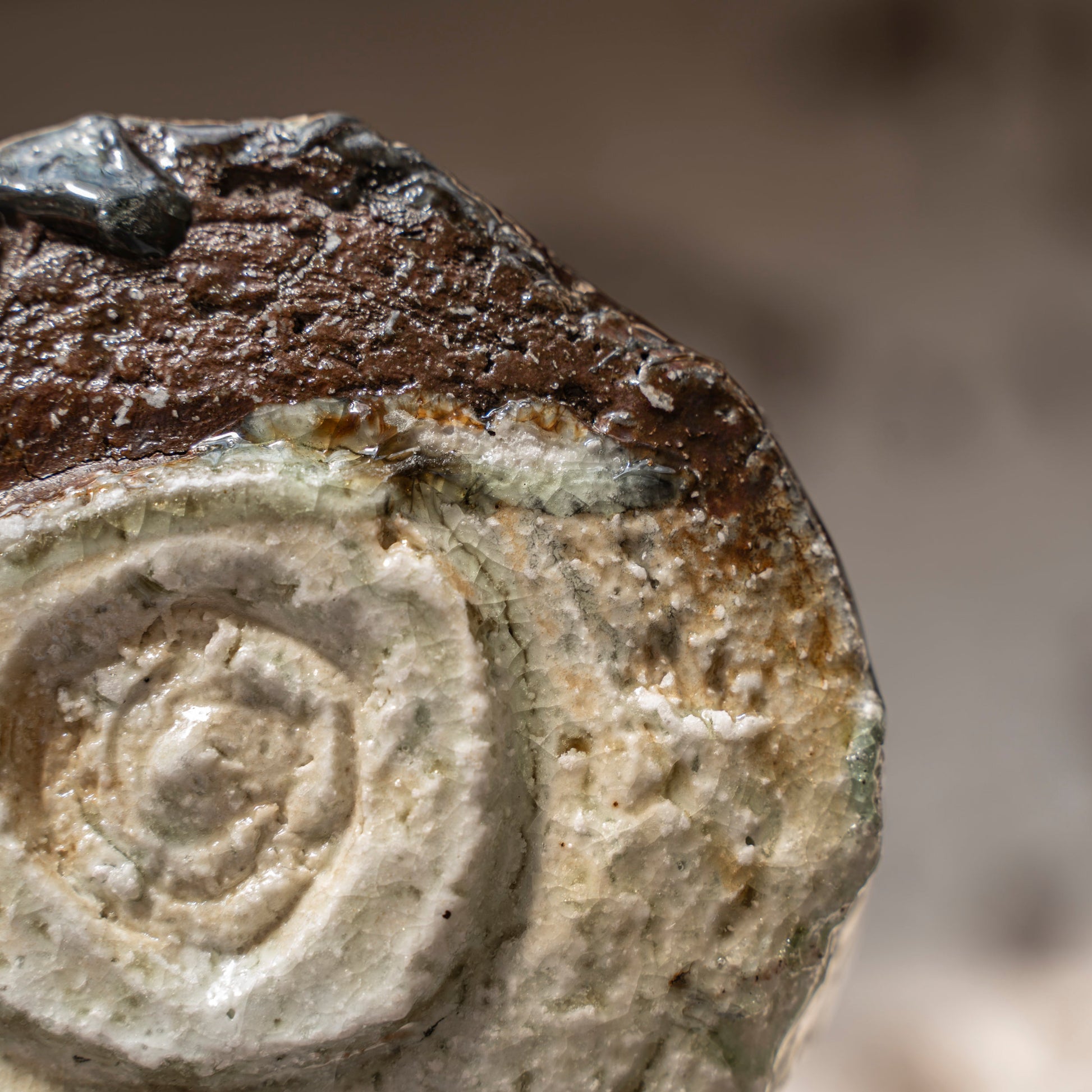 Shigaraki ware is characterized by its iconic natural color gradient of browns. The surface often features rustic, rough and earthy textures caused by the existence of feldspar and quartz sand in the clay.